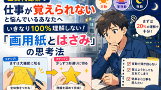 三交代勤務で「仕事が覚えられない」と悩んでいませんか?夜勤や睡眠不足で思考力が落ちる環境でも、いきなり100%理解しない「画用紙とはさみ」の思考法を使えば、効率よく仕事を覚えられるようになります。実体験をもとに具体的な方法を解説します。