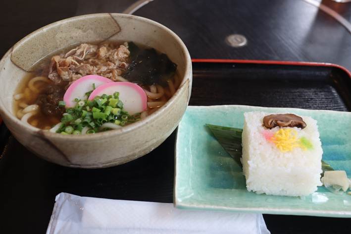 肉うどん定食は、岩国寿司も味わえ観光で来た方も楽しめる内容でした。