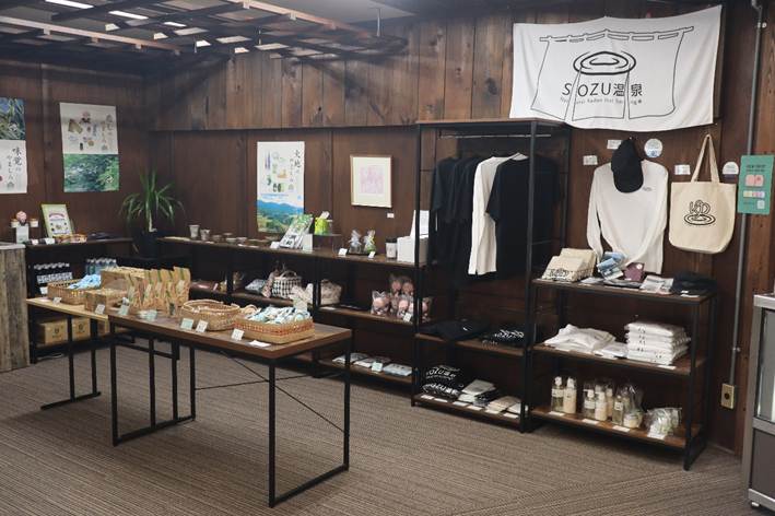 中でも目を引いたのが「SOZU温泉」のロゴ入りTシャツやトートバッグ。
