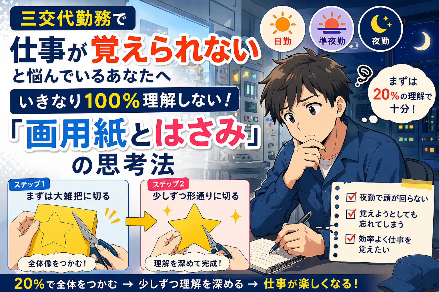 この記事では、三交代でも無理なく仕事を覚えられる「画用紙とはさみ」の思考法を、実体験をもとに解説します。
