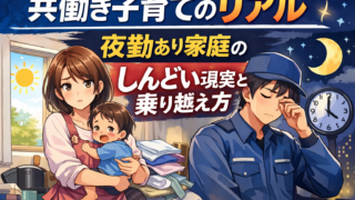 共働き×子育てで「しんどい」と感じていませんか?夜勤あり家庭のリアルな悩みと、少しでもラクになる工夫を三交代パパの体験ベースで解説。夫婦関係を良くするコツや今日からできる対処法も紹介します。